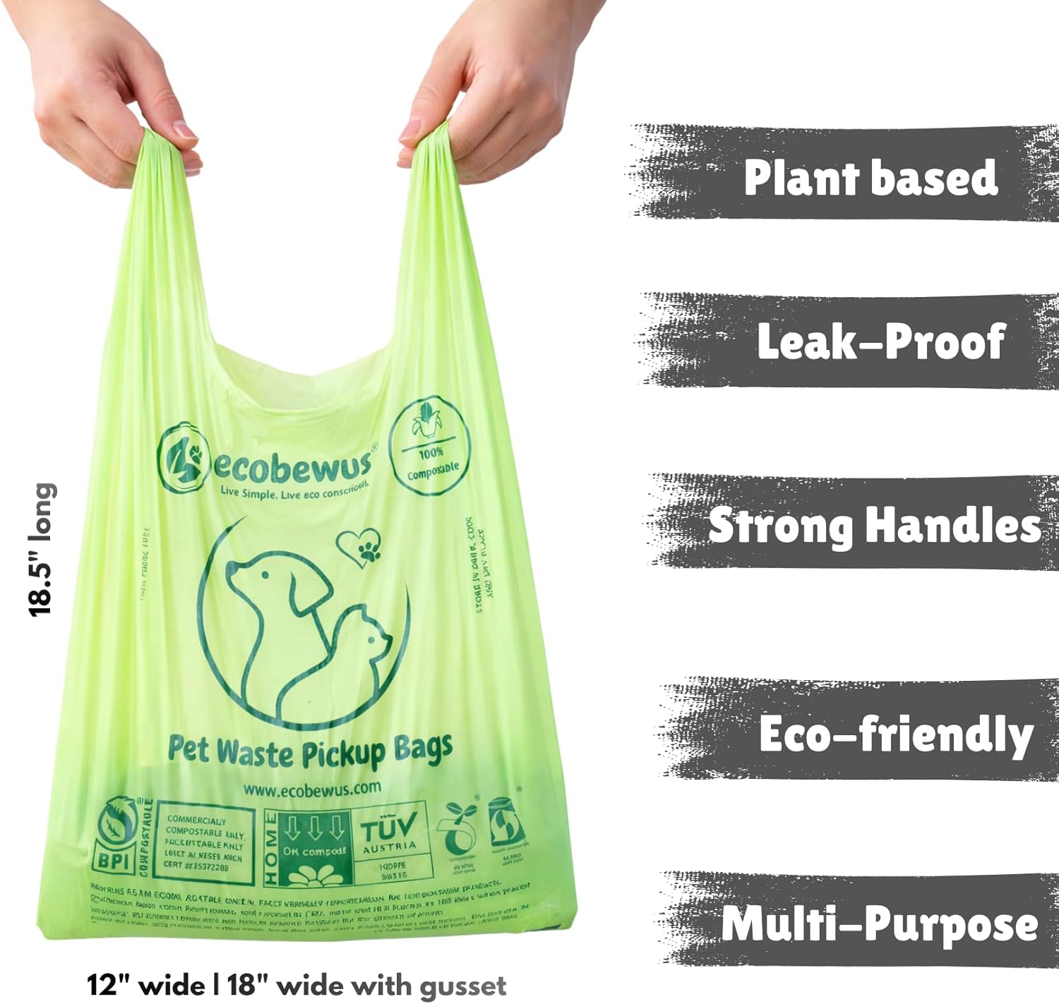 - 💧 LEAK-PROOF: ecobewus premium quality 100% compostable bags are strong, flexible & leak-proof. They have excellent strength and resistance to tear