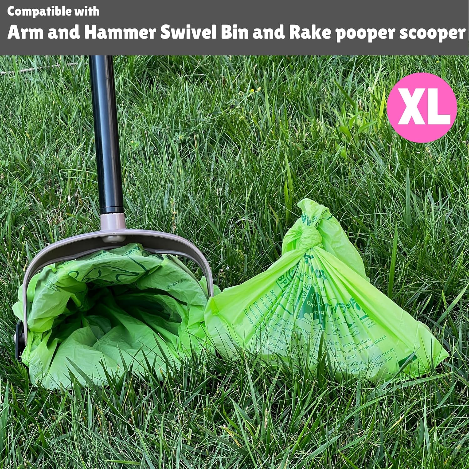- 👍 COMPATIBLE WITH ARM & HAMMER SWIVEL BIN & RAKE POOPER SCOOPER: Our XL grocery size doggy poop bags are compatible with Arm & Hammer Swivel Bin & Rake pooper scooper.
